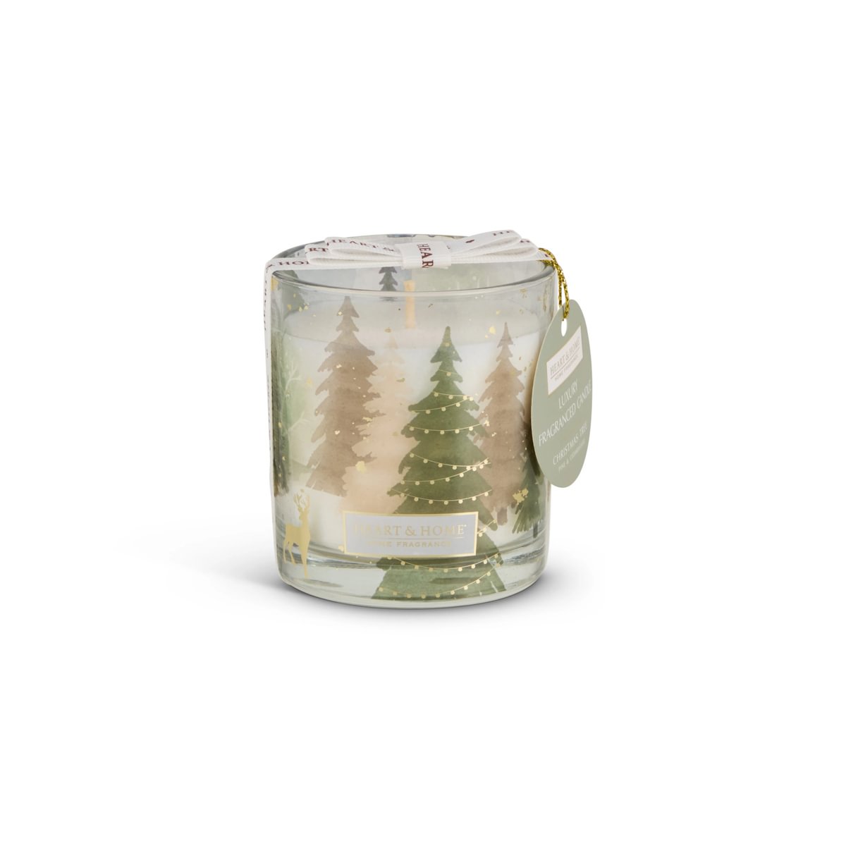 The Heart & Home Scene Candle has our fragrance-rich, signature soy blend wax housed in a pretty glass jar which has been wrapped with a stunning watercolour winter scene. The scene lovingly illustrates the fragrance within. The Christmas Tree Scene Candle features the scent of evergreen fir trees, cedarwood and a touch of honey to bring a classic scent that truly summons the season. Complete with a ribbon, bow and gift tag this truly is the perfect Christmas gift!